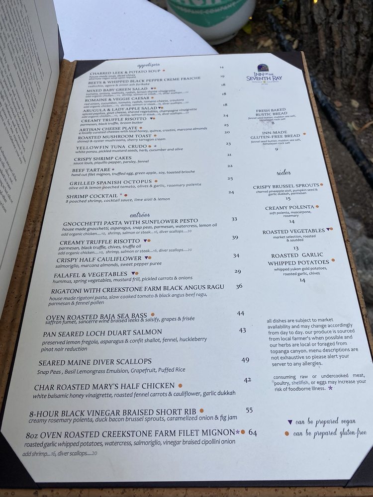 Inn Seventh Ray, located in Topanga, CA, is a hidden gem offering a magical atmosphere by the river. The venue provides a romantic and classy setting with starlit canopies and twinkle lights, perfect for special occasions. The menu features ethically sourced ingredients, with a focus on pescatarian and vegan options. Customers rave about the fresh and flavorful dishes, such as the Pulpo, Salmon, and Maine diver scallops. The outdoor seating area, complete with a covered pavilion and peaceful river views, adds to the enchanting dining experience. While the service may be a bit slow at times, the attentive staff and lovely ambiance make it worth the visit. Inn Seventh Ray is hailed as one of the best restaurants in LA for its exceptional food, service, and idyllic surroundings. Visit this magical spot for a truly unforgettable dining experience.